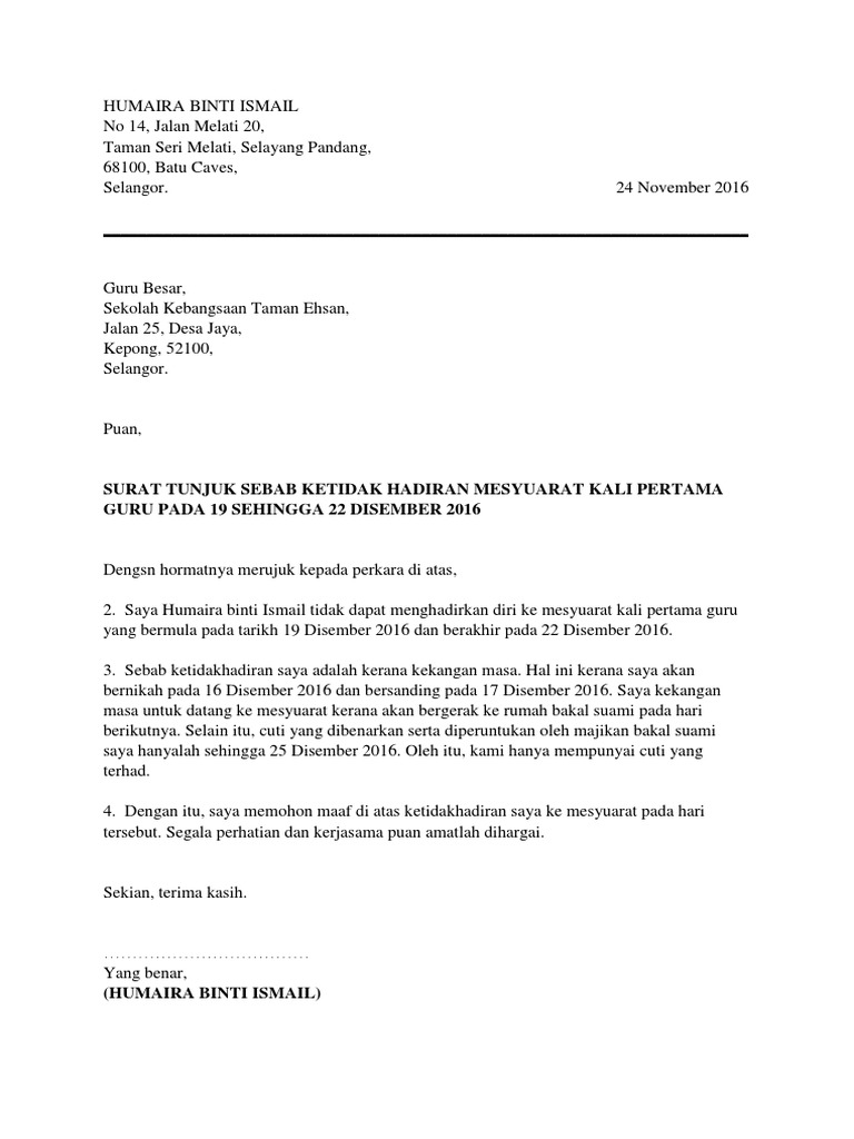 Surat Tunjuk Sebab Tak Hadir Mesyuarat Pdf